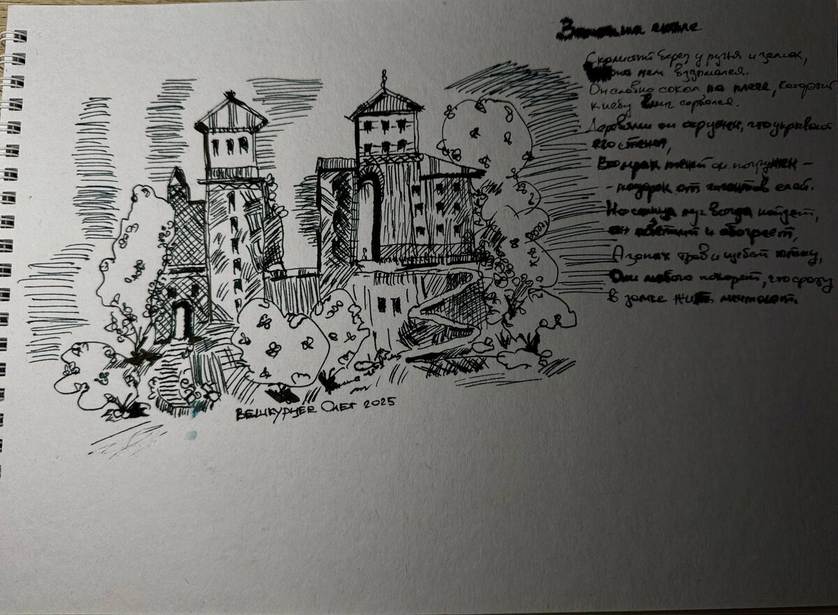 Замок на скале Скалистый берег у ручья и замок, что на нём вздымался, Он словно сокол на плече, который к небу вмиг сорвался. Деревьями он окружен, что укрывают его стены, Во мрак теней он погружен — подарок от гигантов елей. Но солнца луч всегда найдет, он осветит и обогреет Вершину замка, тот гранит, в чью мощь любой готов поверить. А запах трав и щебет птиц, которые гостей встречают, Они любого покорят, что сразу в замке жить мечтают.