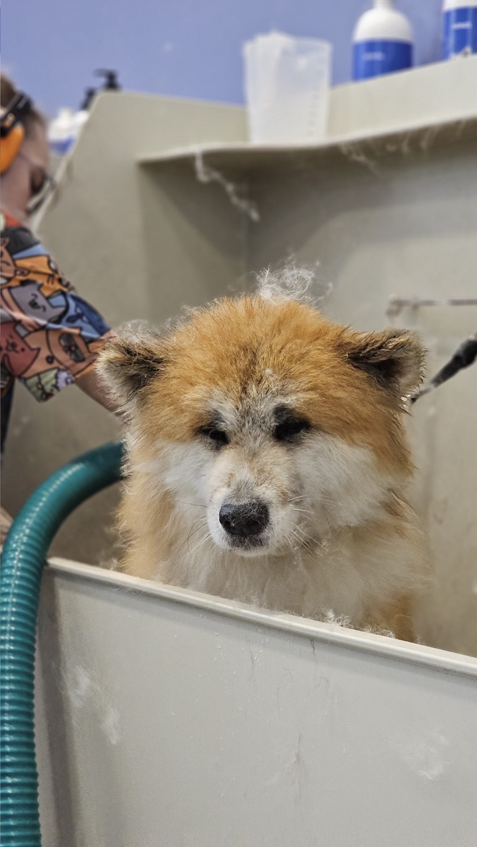 Следующий пушистик на спа-процедурах - акита Ник-ко 🐤