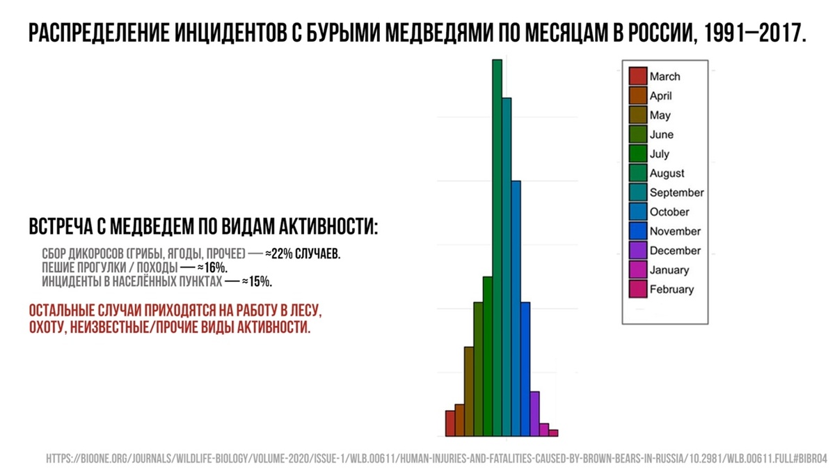 Причины этому довольно логичны и связаны с поведением обеих сторон: Сборщики дикоросов нередко оказываются в настоящих «медвежьих» местах. Особенно осенью их маршруты часто пересекаются с путями медведей в местах