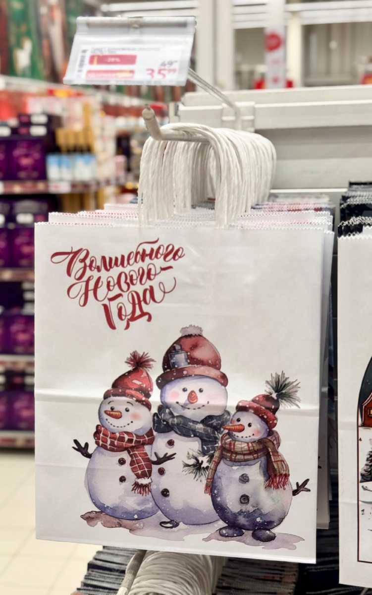 Поехала в самый большой Ашан города - смотреть, что продается к Новому году! Цены, подарки и сладости!🍫 На днях я специально выбралась в Мегу, чтобы заглянуть в самый большой Ашан нашего города. Ехали мы аж на трёх видах транспорта! Хотелось посмотреть, какие новинки завезли к Новому году, какие цены и есть ли хоть какие-то акции. 🎁 Первые нас встретили подарочные пакеты. Сразу у входа огромные стенды с новогодними пакетиками и коробочками. Глаза разбегаются! Есть блестящие, с Санта-Клаусом, оленями, елками, снежным городом, выбор огромный…но цены, честно говоря, не порадовали. Но! Если пройти чуть дальше, можно наткнуться на скидочные стенды - там я и прикупила несколько пакетиков по акции: • средние — по 35 ₽ • большие — по 50 ₽. Отличный вариант, если не хочется переплачивать за блестяшки 😊 И вот такие чуть меньше. Помимо бумажных продавались и полиэтиленовые пакетики с новогодними картинками. 📚 Книжки, раскраски и письма Деду Морозу. В книжном отделе уже праздничное наст