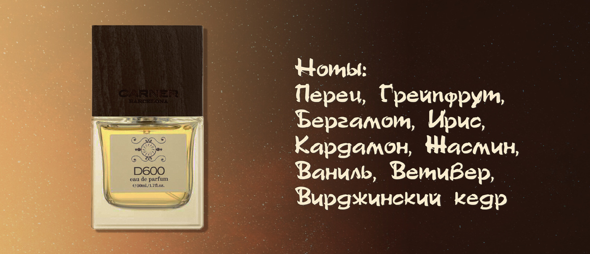 Здесь главенствует ветивер. В нём нет характерной землистости. Ветивер словно искупали в молоке, смыв всё лишнее и оставив на прощание приятный дымно-шоколадный оттенок. Также я чувствую в парфюме нюанс, многократно повышающий стоимость его шлейфа – запах дубовой бочки, пропитанной коньячными спиртами. По мере раскрытия D600 теплеет. Острые алкогольно-специевые ноты смягчаются под напором сладкой мелкодисперсной пудры, смолотой из корня ириса и стручков ванили. D600 богат на переливы. Его древесные, пудровые, пряные и ванильные грани попеременно предстают перед носителем. Это хорошо продуманная нишевая история. Не зря за брендом Carner Barcelona закрепилось неформальное прозвище гуру древесных композиций.