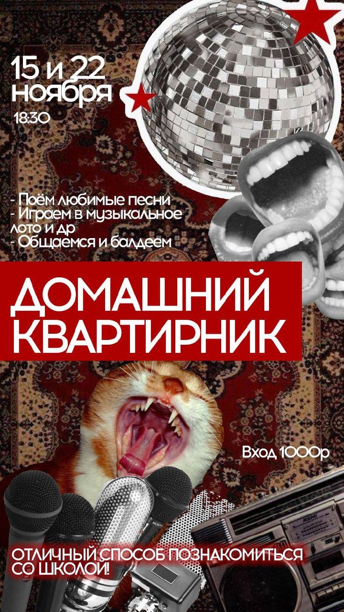 Домашняя вечеринка в любимой школе!😍 Будем петь любимые песни, общаться, кушац пиццу и играть в музыкальное лото! На двух филиалах) Кстати, отличная идея познакомиться поближе со школой и педагогами😉 вэлкам! 🔴Писать сюда @shirerot за билетами!
