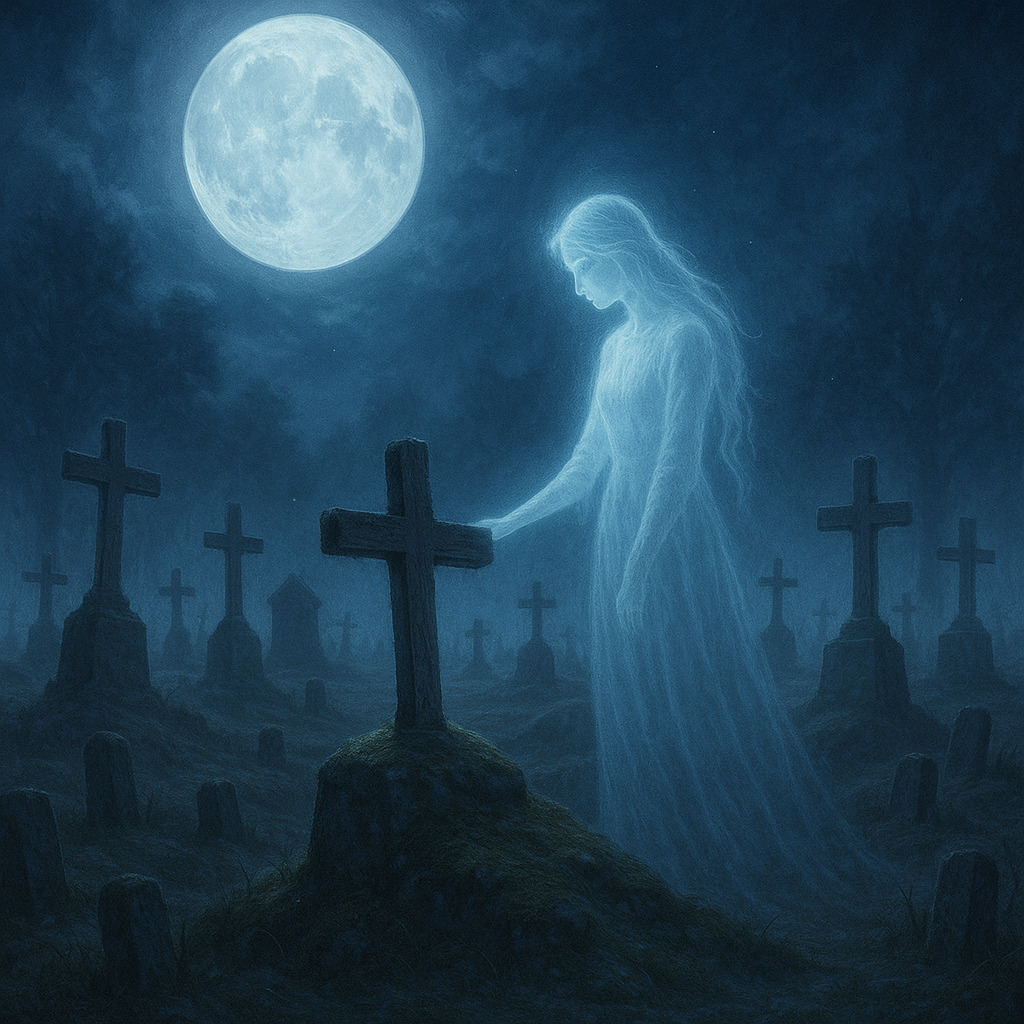 Уж когда сама с семьёй в город переехала, могилу искать стала. Помнила только , недалеко от ограды. А там холмов с покосившимися, стёртыми крестами глазом не окинешь. — Ряд какой, какой холм не упомнить, — горевала она. А Пелагея всё чаще ей сниться стала. Тихая, печальная. Словно напоминание: я здесь. Одна. Меня и помянуть-то некому. Тётке Рае тогда двенадцать лет было. Лето. Полная луна. Ночь светлая такая, что тени — чёрные-чёрные. Бабушка будит её: — Одевайся. Пойдём сестру мою искать. — Бабушка, ночью? На погост? — Ночью и надо. Шли они тропинкой пыльной. Луна так светила, что каждый камушек, каждый сучок на ветке был виден. Кладбище в этом сиянии купалось будто не из земли, а из серебра
