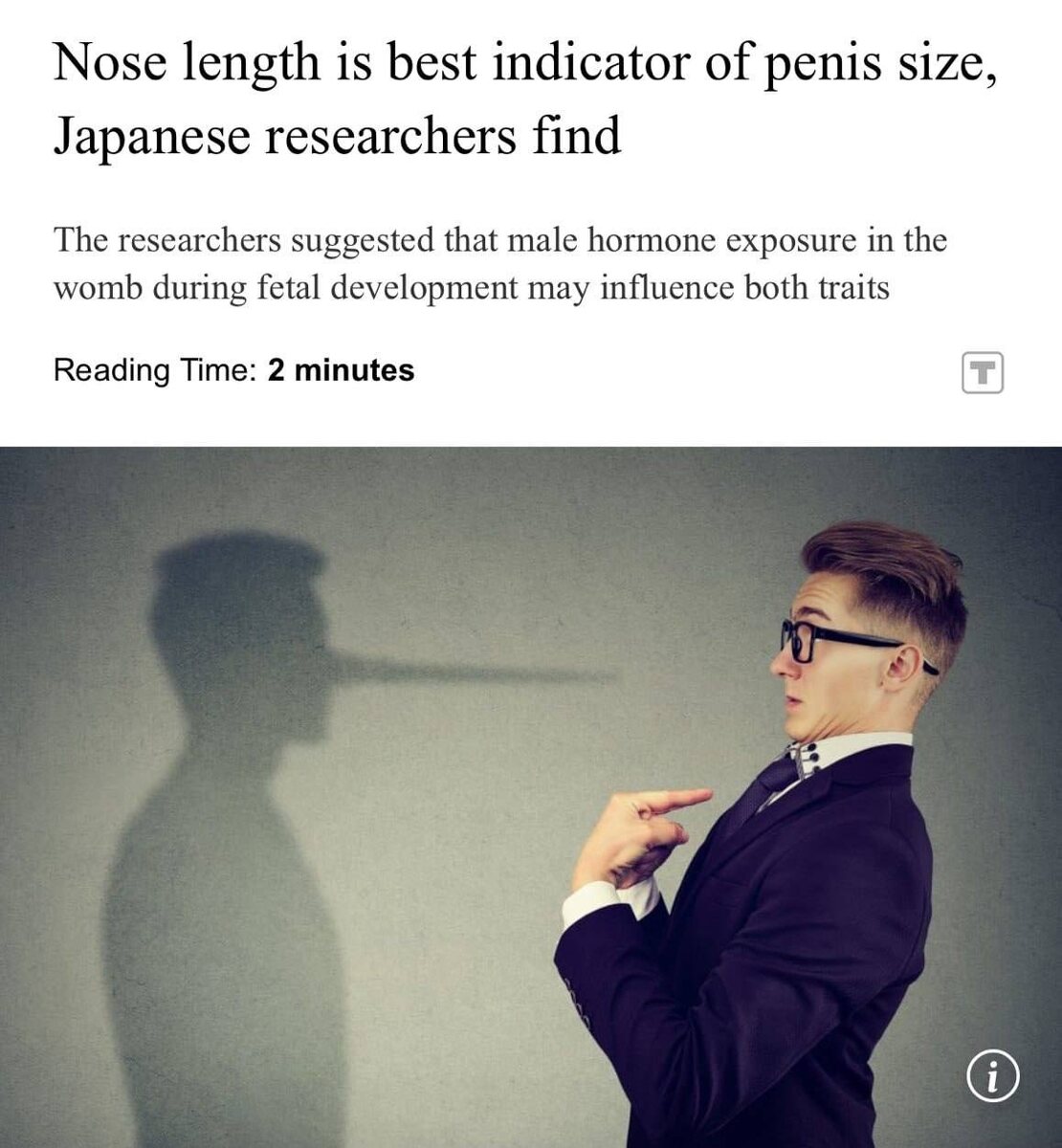 Длина пениса напрямую зависит от размера носа — это выяснили японские учёные