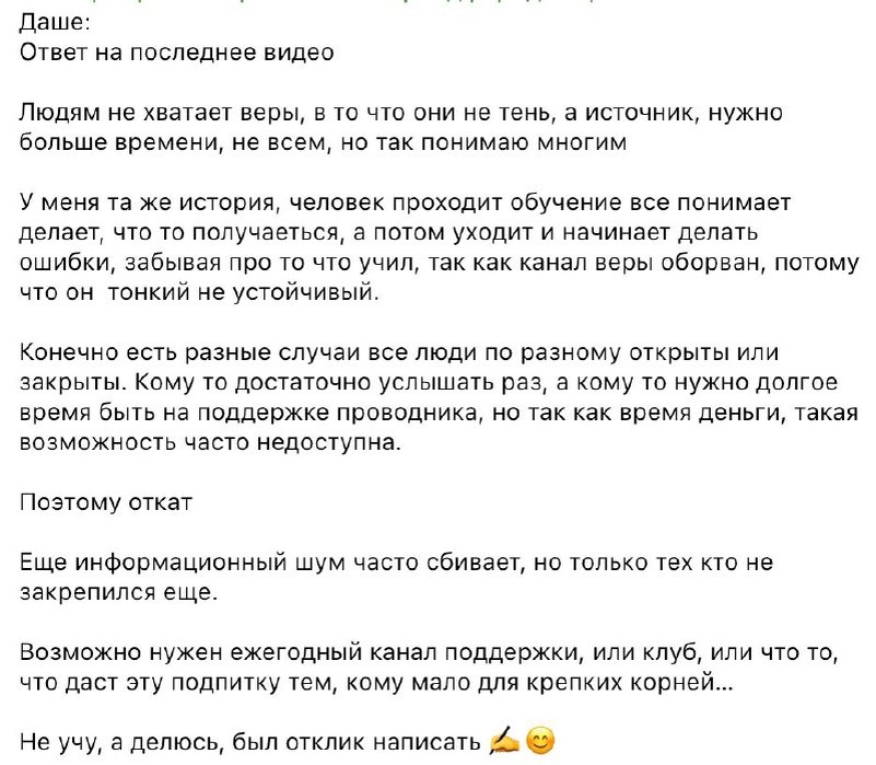В ответ на последнее видео мне пришло вот такое ценное сообщение