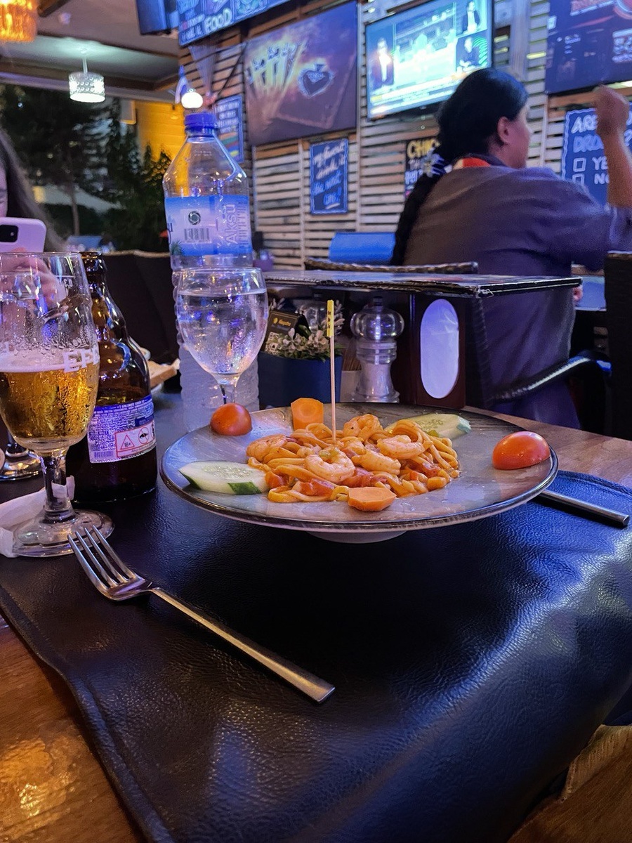 Решили мы пройтись по главной улицы Алании и тут же наткнулись на хорошее место, где можно было недорого перекусить. Это место часто рекомендуют тем, кто хочет попробовать бургеры в Аланье и устал от традиционной турецкой кухни. Ресторан выделяется среди других заведений благодаря разнообразию меню (бургеры, пицца, макаронные изделия), использованию свежих ингредиентов и современному подходу к подаче блюд. И вот мы здесь и пробуем бургеры и все, что с ними связано. Оказывается, что по сервису здесь все очень прилично. Каждый официант занимается "разноской" своих блюд. К примеру, дочкам принесла картофель фри девушка, а бургер с веселыми огоньками подали мне позже, но уже сам повар. И выглядело это фиерично. Кстати, но тоже с картофелем фри и за "смешные" деньги, но по вкусу это было прям "вау". Напитки здесь чуть дороже, чем в магазине, но не сильно. Есть и рыбные продукты: кальмары, омары, а также сочные стейки на огне. Все это дорого и ждать очень долго по приготовлению, а наша ц