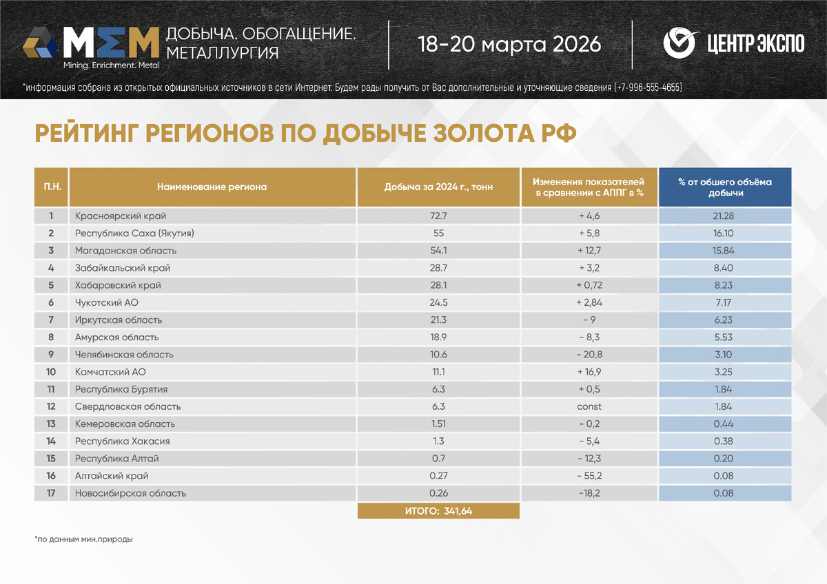 Золото России – 2024: Рекорды Сибири и Дальнего Востока на фоне стагнации промышленных центров.