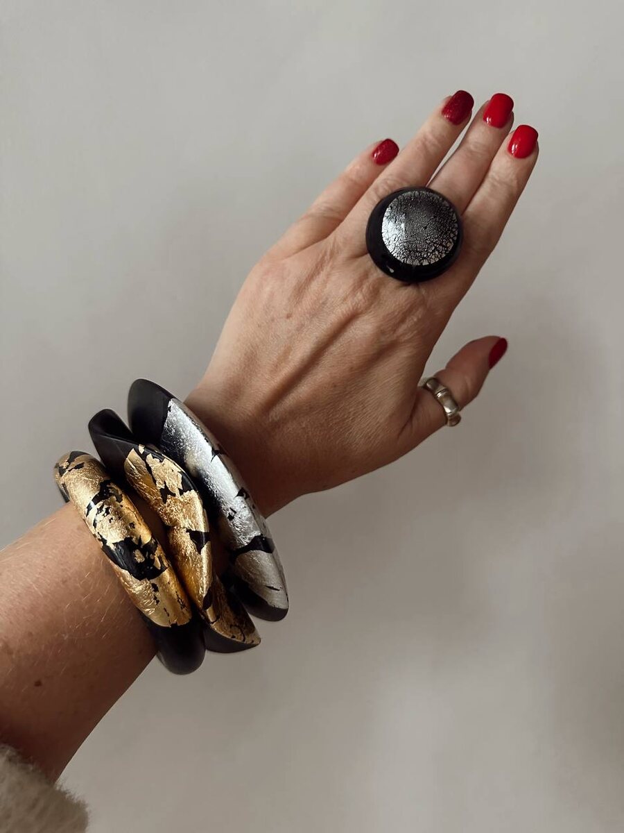 *браслеты sold out Браслеты, которые разрушают стереотипы, потому что такие никто не видел! Эбонитовое дерево, дерево Венге, сусальное серебро 925 пробы, золото 18 карат Каждый браслет в единственном экземпляре, без повторов Браслет 12900₽ Оформить заказ и получить стилистическую консультацию, пишите в @PJ_murano_bot