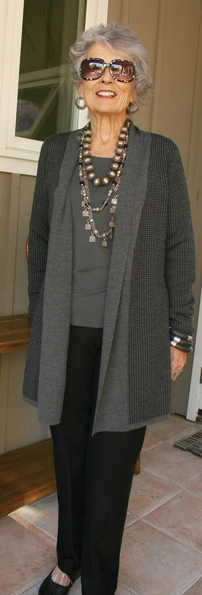 Добрый день, дорогие читатели. Сегодня я хочу снова поболтать о моде, это у меня любимая тема. Наткнулась на днях на интересное видео.. Девушка азартно рассказывала, как и с чем носить черные вельветовые брюки. Лично я черные брюки терпеть не могу, ну скучно мне с ними. Да и в быту вещица проблемная, особенно если сшиты брючки из вельвета. Но внезапно меня посетила идея придумать, с чем же носить черные брюки, чтобы выглядеть модной и стильной. Начнем с того, что же именно меня не устраивает. Образ ниже вроде бы имеет право на жизнь, хотя и выглядит пресным. Но, согласитесь, подобные наряды можно видеть десятками за день, причем на женщинах любого возраста и веса. Никакой индивидуальности в них не наблюдается, а ведь наша одежда - способ рассказать о себе. Черные брюки это классика и само собой, у меня они имеются. Правда, в одном экземпляре. Носить я их планировала с белой рубашкой и длинным черным жилетом. Но надела пару раз и то, и другое. После чего брючата осели в шкафу. Сейчас п