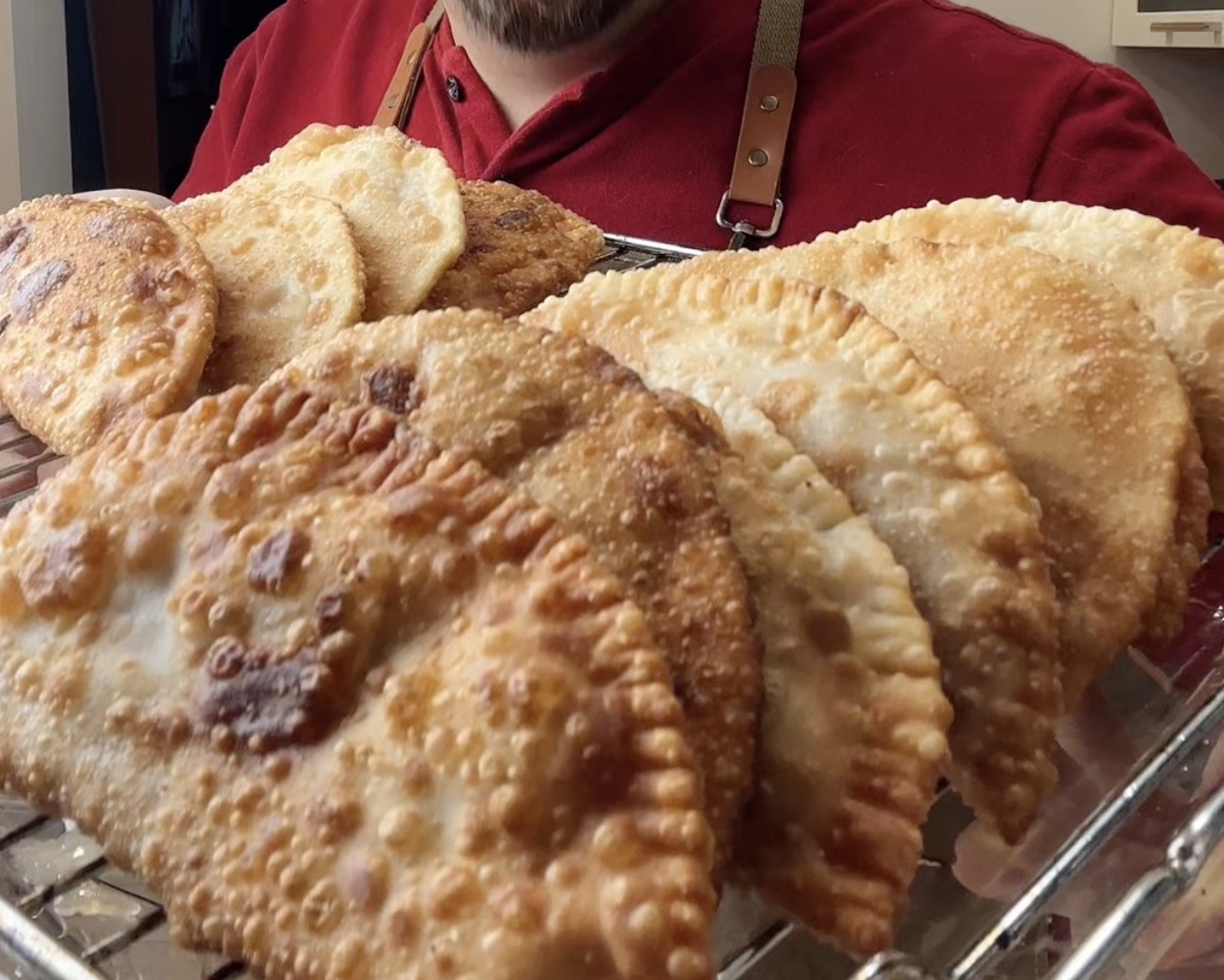 Идеальное заварное тесто для чебуреков Этот рецепт проверен не раз и гарантирует прекрасный результат. Ингредиенты (на ~12-14 чебуреков): Тесто • Мука пшеничная — 500 г (и еще немного для подпыла) • Кипяток (крутой) — 250 мл (это примерно 1 стакан) • Масло растительное — 3 ст. ложки (в тесто) • Соль — 1 ч. ложка без горки (7-8 граммов) Начинка: • Говяжий фарш — 500 г (лучше брать не постное мясо, а с жирком, но постное тоже пойдет) • Лук репчатый — 2-3 средние головы (около 400г) — это главный секрет сочности! • Вода— 80 мл • Соль — 1 ч. ложка (10 граммов, или по вкусу) • Молотый черный перец — 1 ч. ложка • Чеснок сушеный – 1 ч.ложка (опционально) • Кондари – 1 ч.ложка (я люблю, опционально) Никаких яиц, холодной воды, дрожжей и тому подобного. Фарша останется примерно 1/3 часть. Я всегда оставляю в заомрозку. Так пару раз сделал, а третий уже можно с фаршем не возиться, использовать заначку. Ну либо сократите ингредиенты на треть, чтобы прям все испол