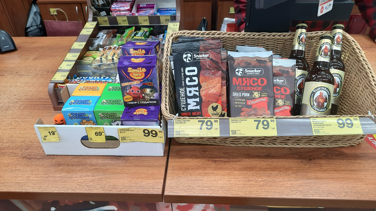 Приветствую вас,мои дорогие друзья и подписчики . Покажу вам в Красное&Белое спиртное со скидкой , товары для дома , игрушки и продукты . Магазин находится по адресу Ростовская область , Зерноградский район , станица Мечетинская , улица Ленина 27 Курица сушёная SNACKER 30 г цена 79.99 рублей. Свинина сушёная SNACKER 30 г цена 79.99 рублей. Пиво Францисканер пшеничное светлое нефильтоованное пастеризованное стекло 5 % 0.45 л цена 99.99 рублей. Игрушка Джампики Хэллоуин цена со скидкой 19.99 рублей. Игрушка Фани Стэмпс цена 69.99 рублей. Мармелад с игрушкой Smile Box 5 г цена 99.99 рублей. Чай Принцесса Нури высокогорный чёрный 100 пакетиков цена со скидкой 149.99 рублей. Набор конфет Делис 150 г цена 349.99 рублей. Страна Армения. Конфеты Москва 200 г цена 329.99 рублей. Страна Россия. Конфеты Черриссимо классик 142 г цена 289.90 рублей. Страна Польша. Набор конфет Cheers, 105 г цена 199.99 рублей. Страна Польша. Вафли Венские груша яблоко 100 г цена 49.99 рублей. Стра