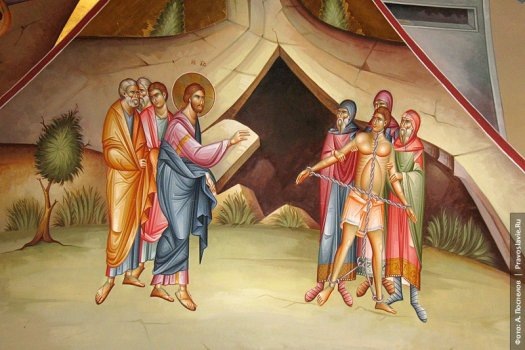 Неделя 22-я по Пятидесятнице. Мч. Не́стора Солунского (ок. 306). 9 ноября 2025 года. В субботний вечер, 8 ноября, под сводами Успенского храма Крыпецкой обители собралась вся монастырская братия вместе с трудниками и паломниками. Здесь, на всенощном бдении, в преддверии воскресного дня воскресные песнопения слились воедино с молитвенным чествованием святого мученика Нестора. На следующее утро, в десятом часу, праздничный звон колоколов возвестил о начале чтения часов, за которыми последовала торжественная Божественная литургия, совершенная монастырскими священнослужителями. После чтения молитвы «Отче наш» с проповедью к молящимся обратился один из насельников обители. Слово его было посвящено евангельской истории об исцелении гадаринского бесноватого. Он поведал о несчастном, чье тело и душа стали жилищем для легиона нечистых духов, обрекавших его на муки и лишивших покоя. Скитаясь по диким, безлюдным местам Гадаринской области в Восточной Палестине, ныне лежащей в пределах Иордании,