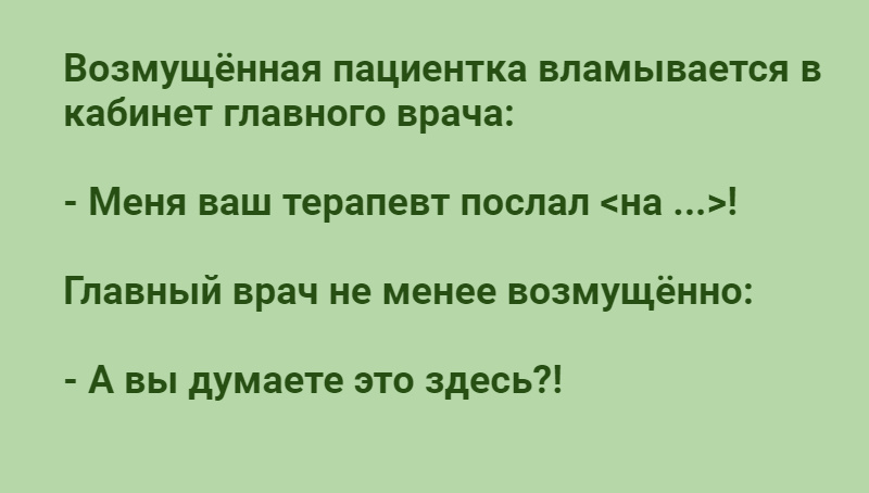 – Так, молодой человек! Вы – санитар, вот и санитарьте, а в разговоры не суйтесь!