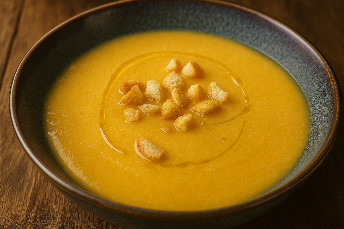 Что делать, если малыш не хочет есть суп? А может ему не нравится вареная картошка или лук? Сказать об этом, к сожалению, наши самые маленькие гурманы не могут. Можно предложить ребенку суп-пюре, как этот. Попробуйте приготовить, ваш малыш точно оценит. Индейку нарезаем небольшими кусочками, заливаем холодной водой и ставим на большой огонь до закипания. Не забываем снимать пену. После закипания убавляем до минимума и варим еще 5 минут. Пока индейка варится, чистим все овощи и нарезаем произвольной формой. Когда индейка сварилась, откладываем её в тарелку. В бульон отправляем овощи и свежемороженый зеленый горошек. Не забываем слегка подсолить. Варим до полной мягкости овощей ( лучше проверять по моркови). Добавляем обратно индейку и доводим до кипения. Затем просто блендерим наш суп до однородной массы. При подачи можно добавить немного оливкового масла (или другое полезное) и сухарики. Приятного аппетита! Надеюсь, этот рецепт порадует вашего маленького гурмана! Буду безмерно рада, ес