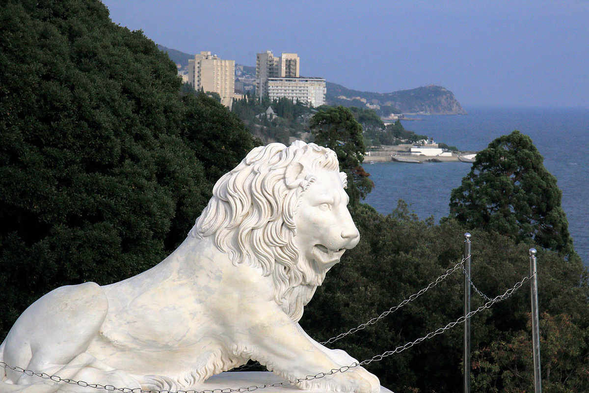 Предыдущий фотоочерк ( https://dzen.ru/a/aQ8_Sb0LvTm_dBB3 ) закончился тем , что мы после экскурсии по дворцу вышли ко львам "охраняющим" дворец с юга и продолжили свою прогулку по нижнему парку. По аллеям мы спустились к морю к т.н. "Скале Айвазовского". Позабавила надпись на трех языках - украинском, татарском и английском, исключая русский. (думаю, что это наследие мовнюков на скале уже заменили на нормальное) . Рядом со скалой на ровной поверхности камня "медвежонок" оставил записку для "котенка". Отдохнув немного на скале мы вернулись в парк. И по лестницам и аллеям начали подъем к дороге в Мисхор. Дерево, которое я сначала принял за кедр, оказалось болотным кипарисом. В итоге мы вернулись к дворцу И от него продолжили прогулку по центральной аллее к выходу и автобусной остановке. Правда, автобус дожидаться не стали, заглянули в фирменный магазин "Массандры" на дегустацию. В ходе которой узнали массу интересного о предприятии "Массандра". Продегустировали с десяток массанд