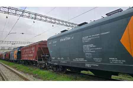 Состав, груженный казахстанским зерном, прибыл в Армению по железной дороге через Азербайджан