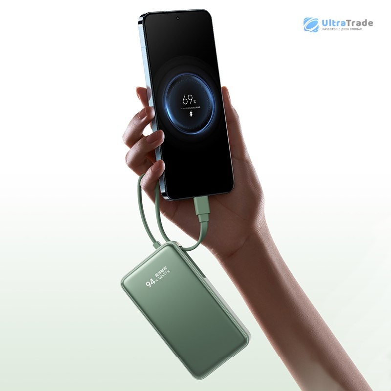 💎 Внешний аккумулятор Xiaomi Power Bank 10000mAh 45W Grape Green (NPB1045) 💎 Это компактный и мощный зарядный банк с встроенным кабелем USB-C, он сочетает в себе высокую производительность, портативность и стильный дизайн. С его помощью вы сможете быстро заряжать свои устройства практически в любой ситуации. Доступен в четырех цветах: Sea Salt Blue , Pearl White , Flowing Pink и Grape Green , чтобы соответствовать любому стилю. ❇️ Оснащен комплексной системой защиты, которая включает: от перегрева, от короткого замыкания, от перезаряда/разряда, от перенапряжения входа и выхода, от перегрузки по току входа и выхода ❇️ Для зарядки устройств с низким энергопотреблением, таких как Bluetooth-наушники или умные часы, предусмотрен автоматический режим малого тока ❇️ Аккумулятор оснащен емкостью 10000 мАч и поддерживает максимальную выходную мощность до 45W, что позволяет быстро заряжать смартфоны, планшеты и другие устройства ❇️ Внешний аккумулятор оснащен дисплеем, который показывает уро