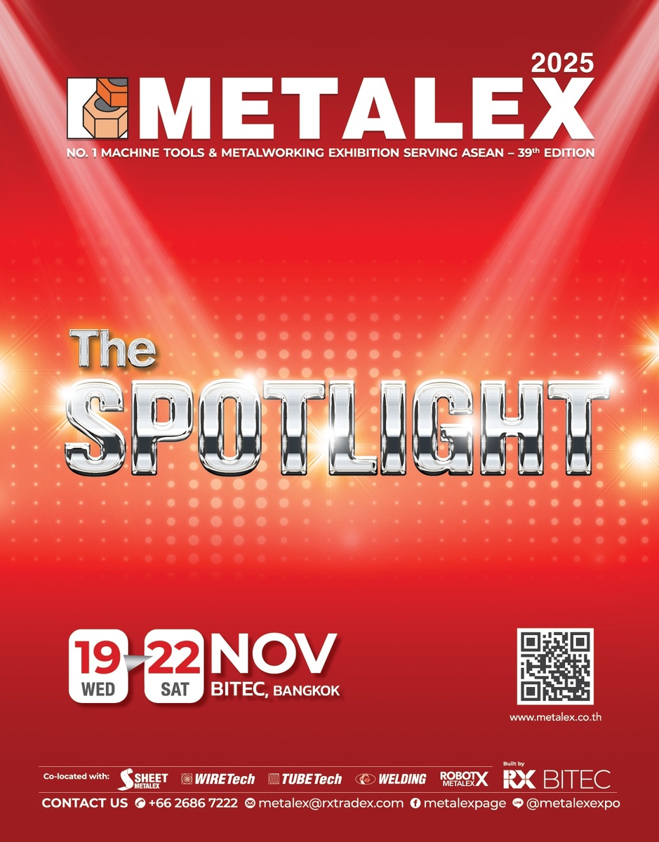 В этом ноябре состоится 39-я ежегодная выставка «METALEX 2025», крупнейшая выставка станков и металлообработки в регионе АСЕАН, организованная RX BITEC, ведущим выставочным организатором в регионе АСЕАН. Мероприятие пройдет с 19 по 22 ноября с 10:00 до 18:00 в выставочном центре BITEC в Бангкоке. В условиях конкурентной промышленной среды выставка METALEX под девизом «В центре внимания» представит инновационные машины, оборудование и передовые решения, разработанные для повышения возможностей и эффективности более 100 000 специалистов по металлообработке со всего региона, которые ищут новые решения. К ним относятся такие отрасли, как автомобилестроение, электротехника и электроника, ремонтные мастерские, машиностроение, производство пресс-форм, судостроение, аэрокосмическая промышленность, сельскохозяйственное машиностроение, строительство, производство упаковки для пищевых продуктов, мебели, ювелирных изделий, медицинских приборов и многие другие. На выставке будет представлен широкий