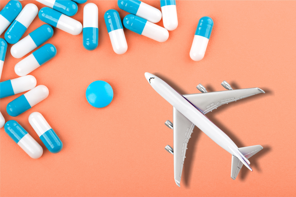 Выпивают таблетку за час до полета.