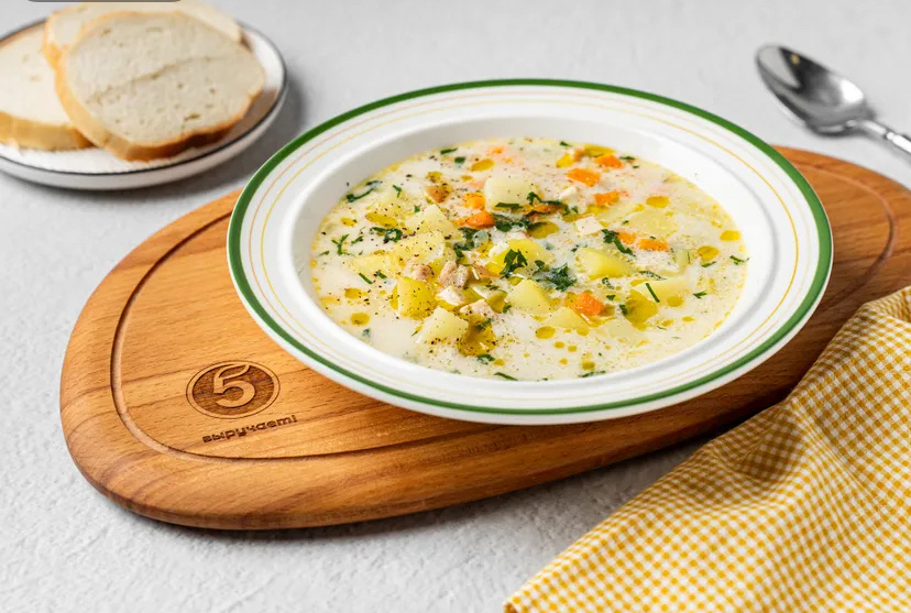 Плавленый сыр сделает обычный овощной суп очень вкусным, придав ему не только сливочную нотку, но и легкую кремовую текстуру. А если добавить еще и копченое мясо, то появится едва уловимый привкус «с дымком». Проварите копчености, чтобы они отдали супу максимум вкуса. Добавьте картофель, морковь и лук. А в самом конце выложите сыр, прогрейте до растворения и дайте настояться 10–15 минут.