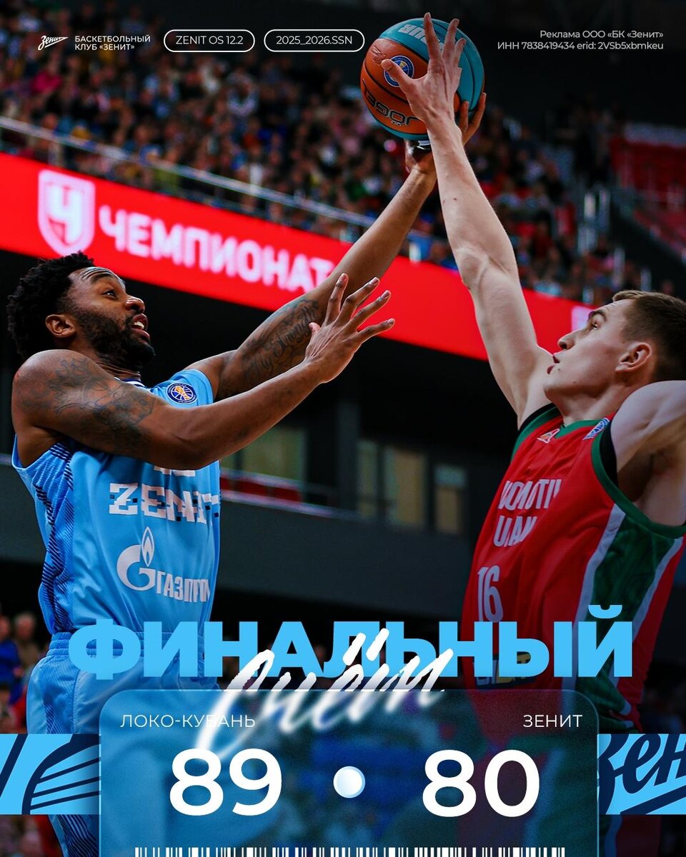 БК «Зенит» в матче Единой лиги ВТБ проиграл клубу «Локомотив-Кубань»