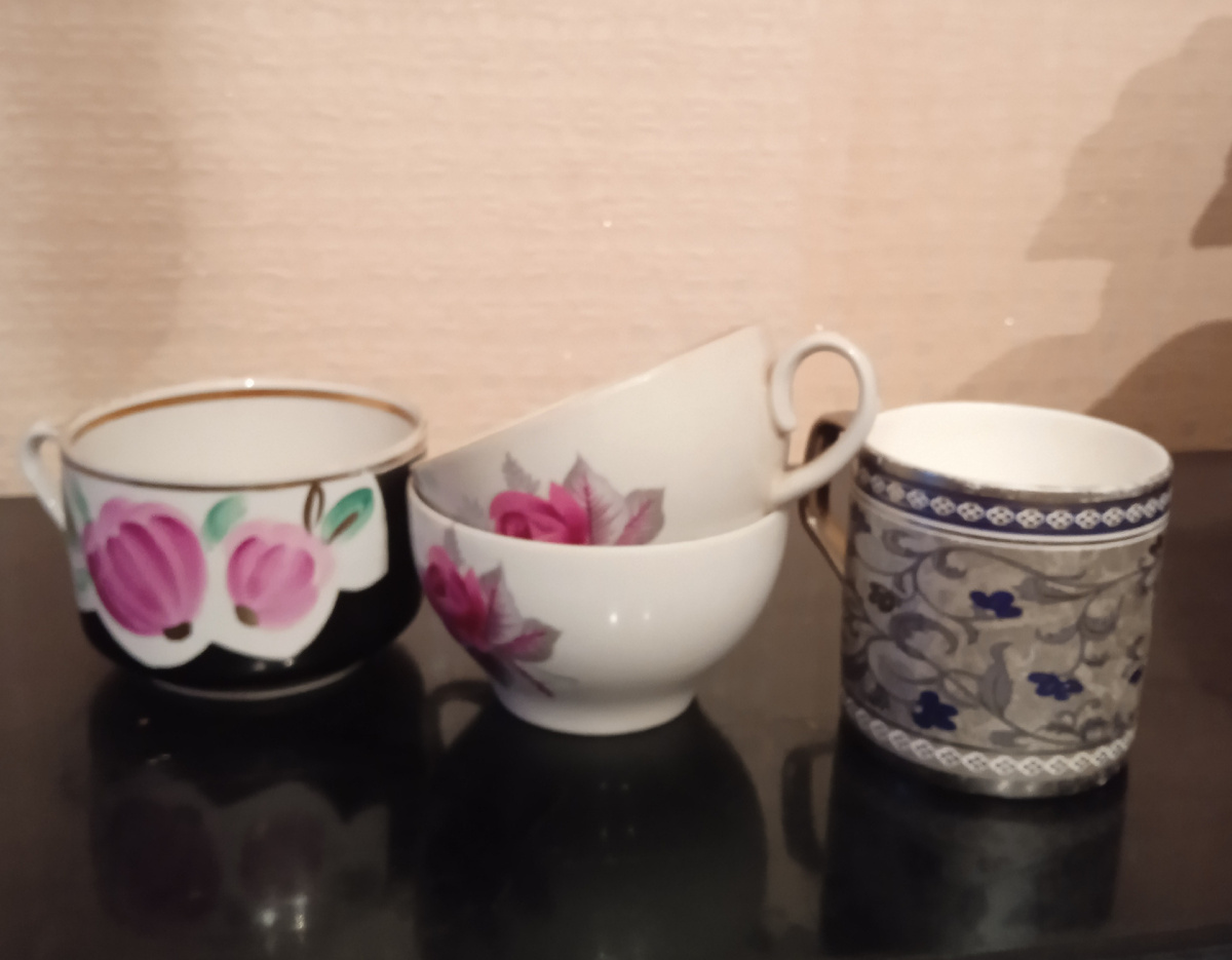 Что это мы всё о высоком, не поговорить ли о прозе жизни? Призывы "расхламляться и избавляться" явно находят отклик в сердцах граждан. И формы это принимает, самые неожиданные. На днях иду (простите за прозу) выносить мусор. На почтительном расстоянии от контейнера выставлена большая картонная коробка, и её содержимое азартно изучают трое мальчишек, лет по десять. Думала - игрушки, а оказалось - фарфор! Даже в сумерках вижу, что чашки очень неплохие: Дулёво? Вербилки? Сама бы не устояла от соблазна заняться такой археологией, но просить же не будешь? Вот набрали в каждую руку по две-три чашечки, и пошли. Мам удивлять? Как бы ни так! Отошли - и давай кидать чашки в железный забор, у кого громче разобьётся! Через минуту - всё в осколках, как после банкета в дворянском собрании. Ушли, наконец. Тогда и я занырнула в коробку - там явно что -то осталось. Вот: Чашечки, действительно, Вербилки. И Рига. И одна - неизвестной мне фирмы, тончайший костяной фарфор. Салатница и пара блюдец... Эт