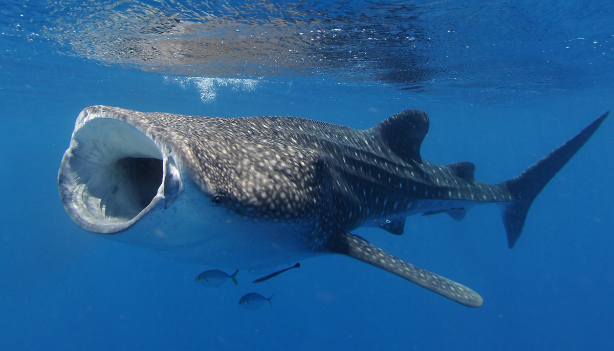Китовая акула - безусловная чемпионка среди рыб и одна из крупнейших позвоночных на планете (если не считать млекопитающих). Этот миролюбивый гигант питается исключительно планктоном, фильтруя воду через рот.