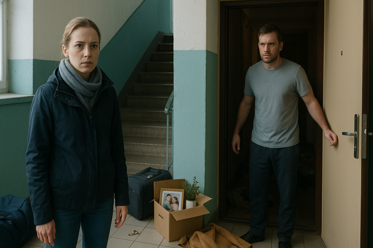 Муж схватил сумки, вытащил их в коридор и открыл входную дверь. Соседка с третьего этажа как раз поднималась по лестнице — замерла, уставившись на происходящее.