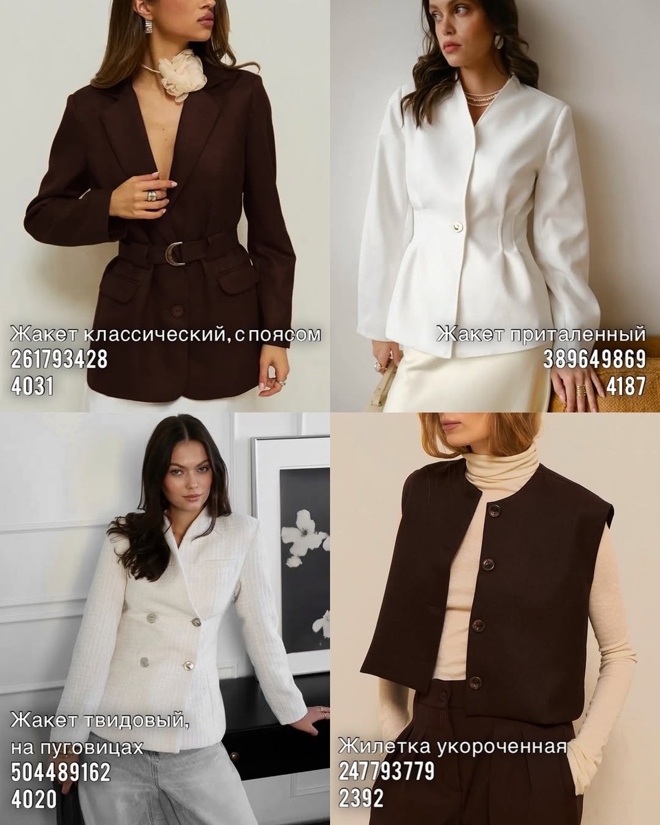 Эта подборка с вайлдберриз как раз из таких: здесь нет случайных вещей. Всё продумано до сантиметра — от линии плеч до формы пуговиц. Разберём каждый образ по порядку, вместе с артикулами и советами стилиста.