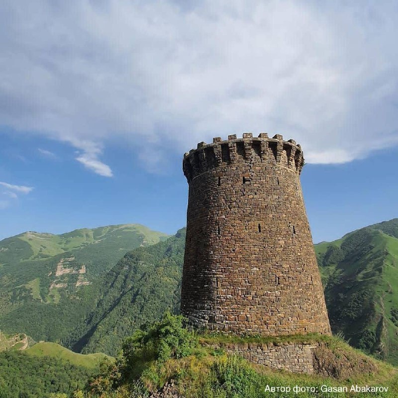 Ицаринская башня Крупнейшая из сохранившихся круглых башен не только в Дагестане, но и на всём Северном Кавказе. Расположенная в селении Ицари, башня была частью защитной системы поселения. Башня находится на выступе горы над селом; с трех сторон расположены крутые склоны, от ближайшей поляны башня отделена восьмиметровым рвом. Башню строили из камня, добываемого недалеко от села. На строительство обязано было выходить все мужское население. В жаркое время, до обеда камни методом цепочки передавались с западного ущелья, после обеда - с восточного. По преданию, раньше башня была 8-этажной. На фотографиях 50-х годов сохранилось 5 этажей, общая высота 18 метров, а к началу 90-х годов оставалось 3,5 этажа. 📌Ицаринская башня на карте #дагестан #башня #история
