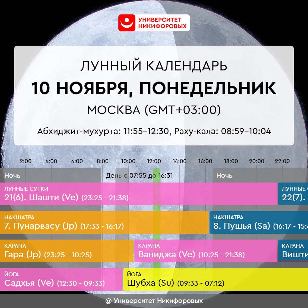 10 НОЯБРЯ, ПОНЕДЕЛЬНИК Утренние часы могут быть немного беспокойными и хаотичными. Однако после половины одиннадцатого день становится более спокойным и достаточно благоприятным. Замечательное время попробовать снова сделать то, что не получилось ранее — перезапустить рабочий проект или заново взяться за личное начинание, которое когда-то не увенчалось успехом. Сейчас могут появиться новые идеи, ресурсы или поддержка, которые помогут преодолеть прошлые препятствия. Это хороший момент, чтобы свериться со своими целями, посмотреть, насколько вы продвинулись, и откорректировать планы на будущее. Возможно, пришло время пересмотреть свои приоритеты и избавиться от того, что больше не приносит пользы. Будьте честны с собой в оценке того, что действительно важно, и не бойтесь внести изменения в свои задачи и подходы. Вечером найдите время для себя и своих близких – это прекрасная возможность инвестировать в отношения с самим собой или дорогими вам людьми.