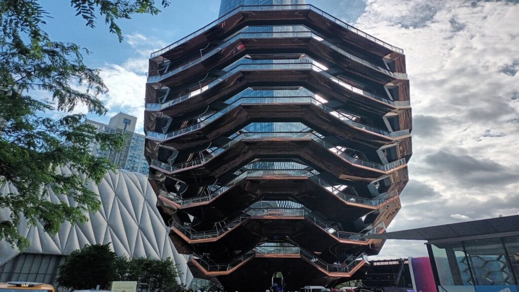 Vessel — это восемьдесят площадок, с которых открывается вид на Нью-Йорк и реку Гудзон. Одним из самых узнаваемых символов нового туристического квартала Hudson Yards в Нью-Йорке стала смотровая площадка Vessel — оригинальная конструкция, которая сразу же привлекла внимание архитекторов, туристов и горожан. Несмотря на высокий интерес публики, площадку несколько раз закрывали. Поводом стали трагические инциденты. Так, по данным Dezeen, в 2021 году вход на объект временно запретили после того, как произошло несколько самоубийств. Последний случай — гибель 14-летнего подростка, прыгнувшего с верхнего яруса. Высота сооружения достигает 46 метров, а его структура напоминает соты или спиральный улей. Внутри расположены 80 смотровых площадок и 154 лестничных пролета, соединяющих между собой более 2500 ступеней. С каждой площадки открывается панорамный вид на реку Гудзон и Манхэттен. Создателем проекта стал британский дизайнер, архитектор Томас Хизервик. По его словам, идея формы вдохновлена