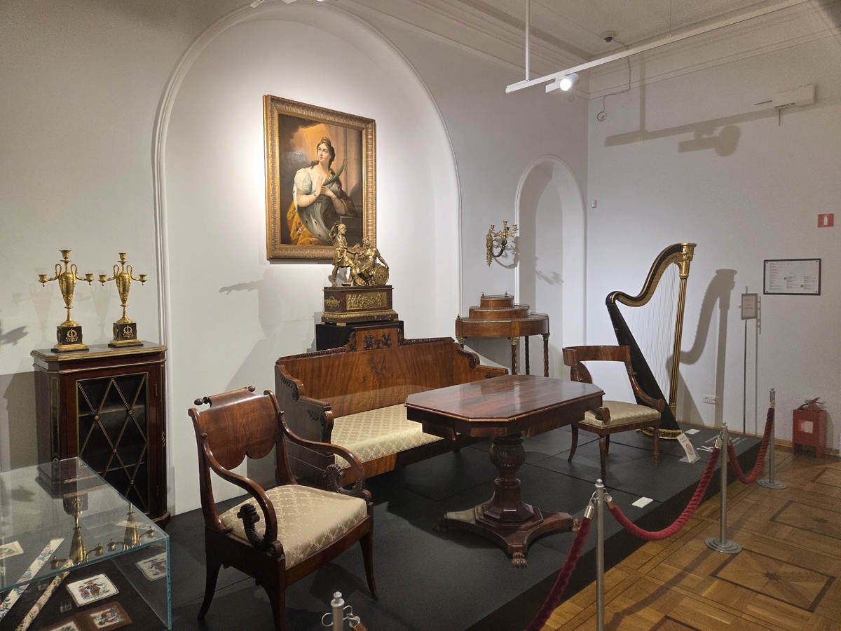 образцы русской дворцовой мебели XVIII—XIX веков. Дворцовый комплекс расположен в небольшом и уютном парке, где в тёплое время года наверняка приятно и хорошо посидеть на лавочке в тени деревьев. Ну а теперь переходим к теме выставок.