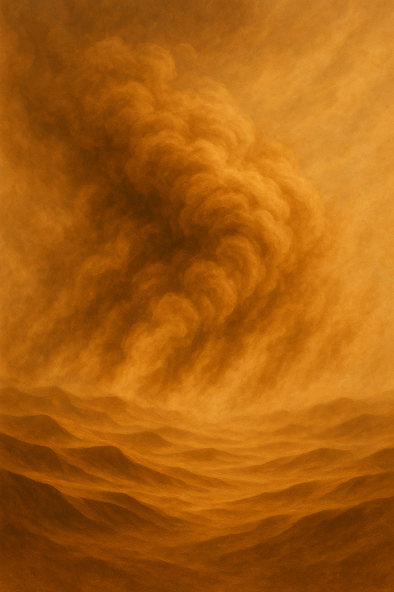 Как и остальным, Лу совершенно не нравилась поднимающаяся буря, а слова приятеля только сильнее раздражали. Махнув рукой на приближающуюся стену песка, молодой человек воскликнул, перекрикивая все усиливающееся гудение ветра: