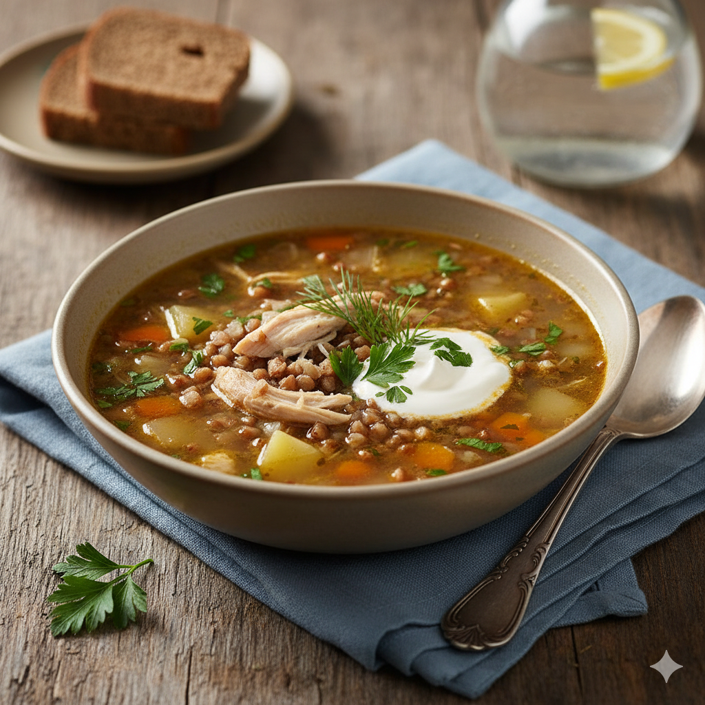 Привет, друзья! Есть блюда, которые мгновенно создают атмосферу домашнего тепла. Гречневый суп — одно из таких! Сытный, наваристый, с любимой гречкой, картошкой и золотистой зажаркой. Этот рецепт рассчитан на 4-литровую кастрюлю. Выбирайте свое любимое мясо: нежная курица сделает суп легким и быстрым, а наваристая говядина придаст ему насыщенный вкус. Начнем? Вот и всё! Наш наваристый, ароматный гречневый суп готов. Попробуйте с кусочком свежего ржаного хлеба и насладитесь этим простым и идеальным вкусом. Приятного аппетита! 🔥 Не забудьте подписаться на канал и поставить большой палец вверх! Пока-пока!