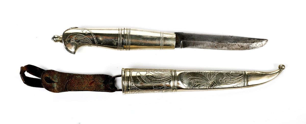 Форма ножа легко узнаваема. Ножны имеют чуть изогнутый низ. Внутри — деревянная или металлическая основа, обтянутая кожей. Снаружи прикрепляют пластины из мельхиора, латуни или реже серебра. На конце ножен часто делают украшенную «шишку» из свернутого металла. Рукоять делают из тёмного дерева или рога, вбивают небольшие штифты из олова или серебра. Узор — цветы, листья, простые растительные мотивы —габариты и рисунок подчеркивают ручную работу.