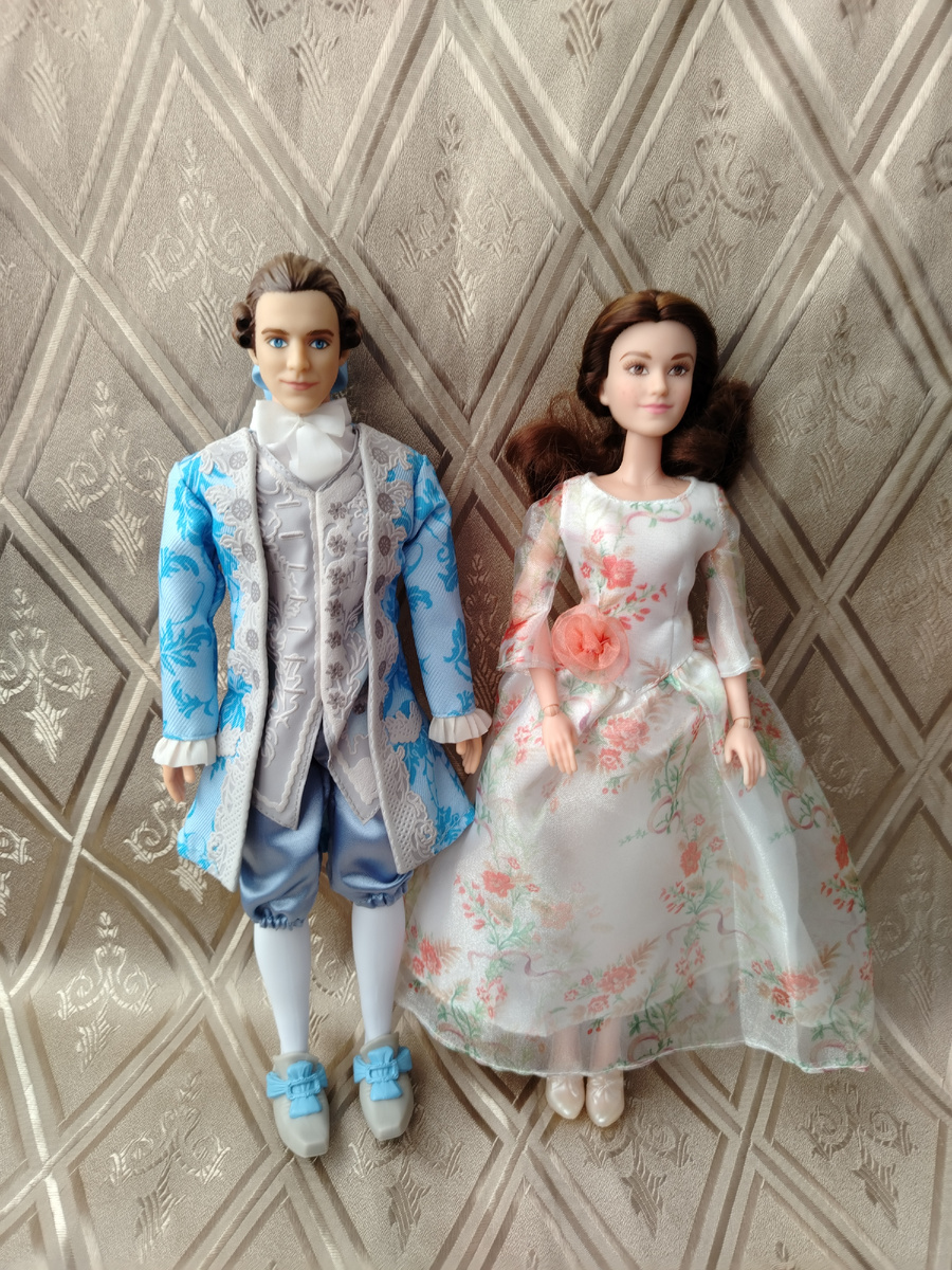 У меня давно в хотелках лежал мерч от Хасбро по римейку "Красавицы и чудовища". Сам по себе фильм довольно никчемный, как и ряд современных переделок старых мультфильмов и сказок. Но меня очень привлекла голова Адама (Дэн Стивенс) и петиточная Бэль (Эмма Уотсон). На промо эти куклы, вроде, выглядели нормально. Но надо было поискать обзоры, потому что самое главное, как всегда, было спрятано под одеждой. Вот эти двое ребят. Вдохнем, выдохнем, и начинаем. Адам. Дэн Стивенс мне нравится еще со времен сериала "Легион". У него очень специфическое, сильно английское лицо эдакого хитрована. Мне нужен был именно этот лук с буклей, потому что он, внезапно, похож на одного персонажа в моих задумках. На актера кукла совершенно не похожа. И боже, как она плоха. Начиная с грязного костюма (пятна от краски на волосах! Это значит, что кукла либо недосохла, и ее тут же одели, либо она подвергалась высокотемпературным пыткам) и заканчивая дубовыми конечностями и молдированными чулками: Голова очень ма