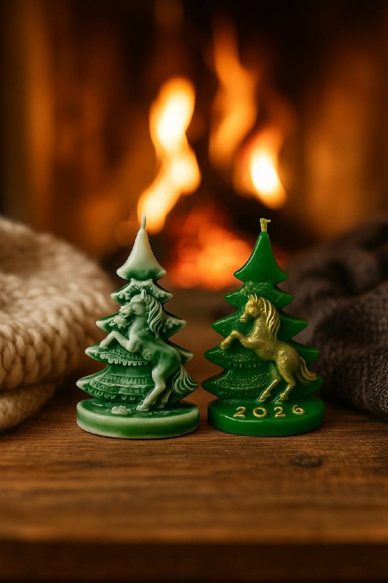 Пока с дизайнером готовим новогодний каталог свечей, хочу вам показать прекрасные елочки с символом 2026 года 🐎, которые уже доступны к заказу 🥰