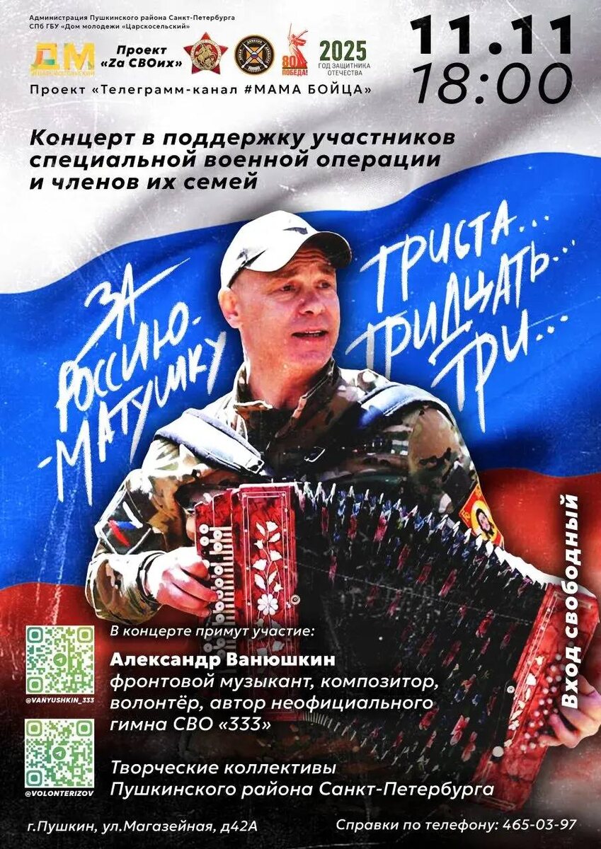 πͺ11 Π½ΠΎΡΠ±ΡΡ Π² ΠΠΎΠΌΠ΅ ΠΌΠΎΠ»ΠΎΠ΄Π΅ΠΆΠΈ Β«Π¦Π°ΡΡΠΊΠΎΡΠ΅Π»ΡΡΠΊΠΈΠΉΒ» ΡΠΎΡΡΠΎΠΈΡΡΡ ΠΏΡΠ°Π·Π΄Π½ΠΈΡΠ½ΡΠΉ ΠΊΠΎΠ½ΡΠ΅ΡΡ πΆ Π² ΠΏΠΎΠ΄Π΄Π΅ΡΠΆΠΊΡ ΡΡΠ°ΡΡΠ½ΠΈΠΊΠΎΠ² Π‘ΠΠ ΠΈ ΡΠ»Π΅Π½ΠΎΠ² ΠΈΡ ΡΠ΅ΠΌΠ΅ΠΉ