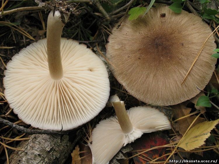Многие путают этот гриб с плютеем оленьим. И правда похож. Давайте рассмотрим отличия. Коллибия: • пластинки не очень частые, раздвоенные, сероватые или молочно-бурые; • шляпка с радиальными штрихами, без бугорка, а то и со впадинкой по центру; • у основания ножки образуются тяжи (похожие на корешки) беловатого, а затем тёмно-коричневого цвета. Плютей: • пластинки очень частые, без раздвоения, розоватые, не доходящие до ножки; • шляпка без штрихов с более тёмным бугорком в середине; • тяжей нет. Коллибия широкопластинчатая – съедобный гриб среднего качества. Употребляется после предварительного отваривания в течение 15 минут.
