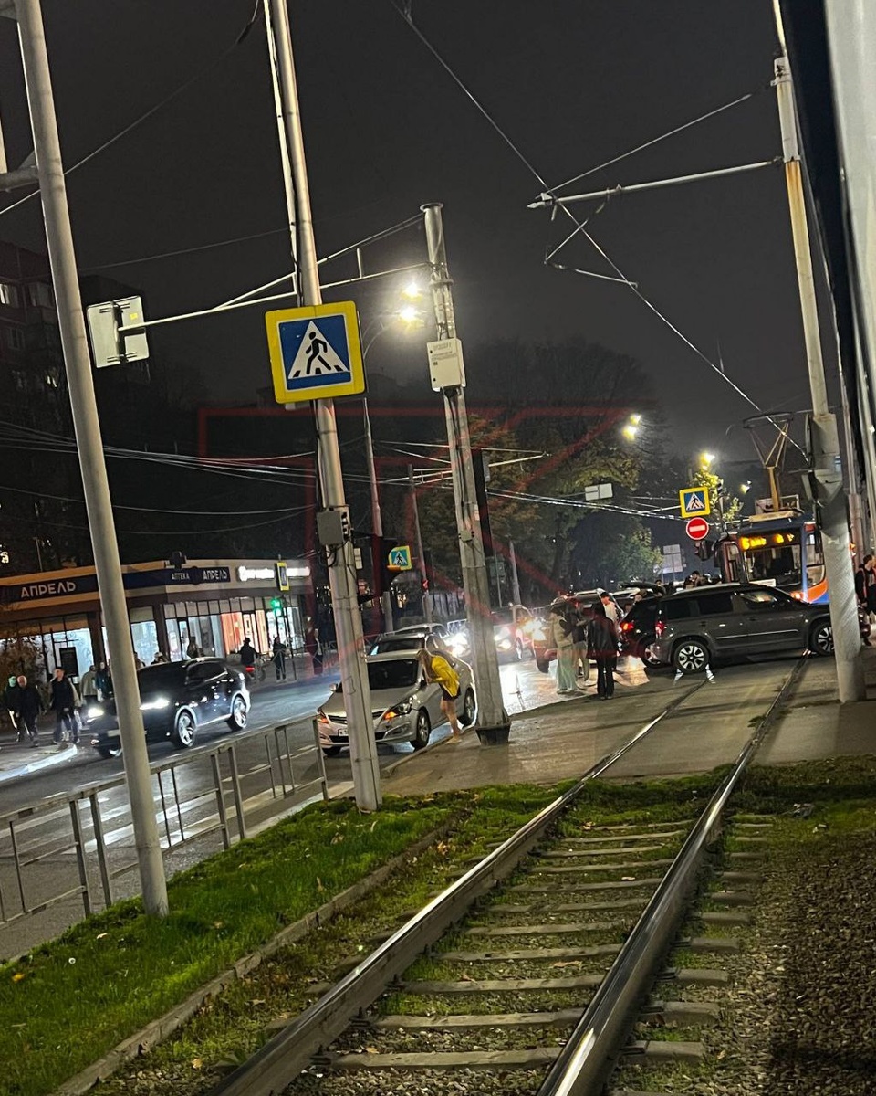 Стоят трамваи из-за ДТП на Ставропольской/Шевченко