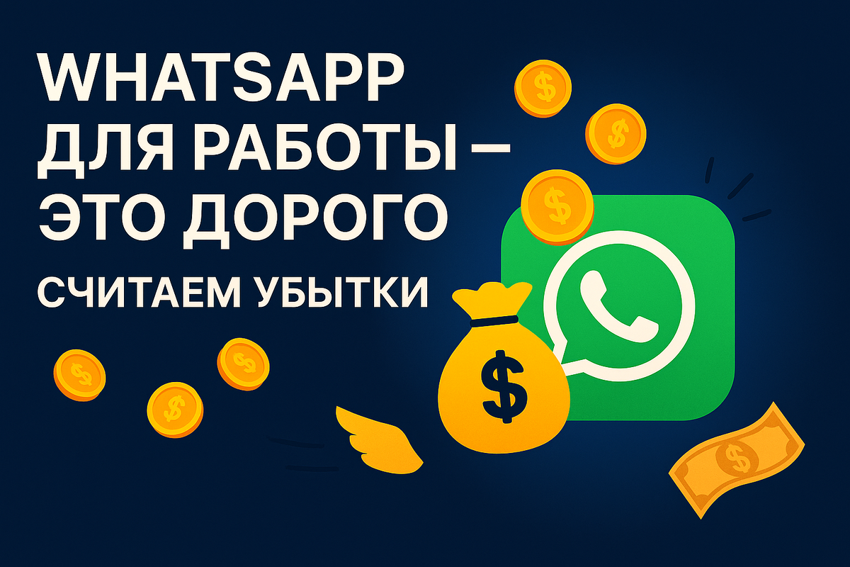 Вы открываете WhatsApp и видите: 7 рабочих чатов, 243 непрочитанных сообщения, задачи тонут в сотнях сообщений. Знакомо? Кажется, что мессенджер — это бесплатно и удобно. Но если посчитать реальные потери, вы удивитесь. ❌ 5 статей убытков, которые вы не замечаете: Как теряем: 💸 Убыток: 3 × 5 000 × 0,2 = 3 000 ₽ в день или 66 000 ₽ в месяц Как теряем: 💸 Убыток: 6 × 5 × 500 / 60 = 250 ₽ в день или 5 500 ₽ в месяц Как теряем: 💸 Убыток: 10 × 5 × 1 500 / 60 = 1 250 ₽ в день или 27 500 ₽ в месяц Как теряем: 💸 Убыток: 2 × 2 000 = 4 000 ₽ в неделю или 16 000 ₽ в месяц Как теряем: 💸 Убыток: 50 000 ₽ в месяц 📊 Сравниваем что имеем и что получаем: ПоказательWhatsAppCRM⏰ Потерянное время45 часов/мес5 часов на внедрение💰 Прямые убытки165 000 ₽5 000 ₽ (система)😡 Стрессовые ситуации23 в месяц0📉 Потерянные клиенты7 в месяц0📈 Эффективность команды—+15% 📈 Реальный кейс: Как компания сэкономила 200 000 ₽ Компания: Оптовая торговля