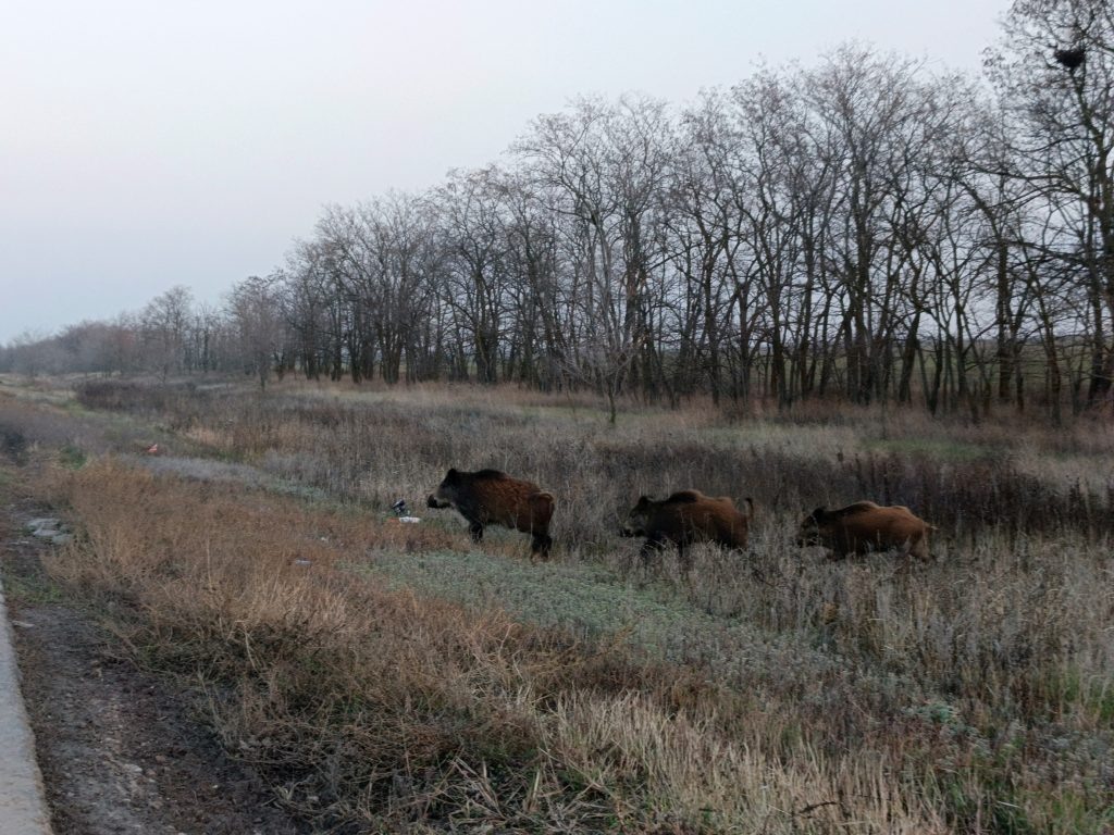 В нескольких шагах от городских улиц Морозовска развернулась настоящая лесная история. В сумерках на трассе появились неожиданные гости — три молодых кабана. В воскресный вечер 9 ноября в Ростовской области вблизи Морозовска произошел необычный случай. Возвращаясь домой по объездной дороге к «Астону» от кольца на Волгодонск, в кустах наш корреспондент с супругом увидели… не фазанов и даже не зайца, а трех диких кабанов. Семейная пара на машине сопроводила кабанов до лесополосы, чтобы они не попали под колеса автомобилей. Этот случай напомнил о том, что дикая природа совсем рядом с нами. Фото и видео: Виктория Менькова, «МВ»