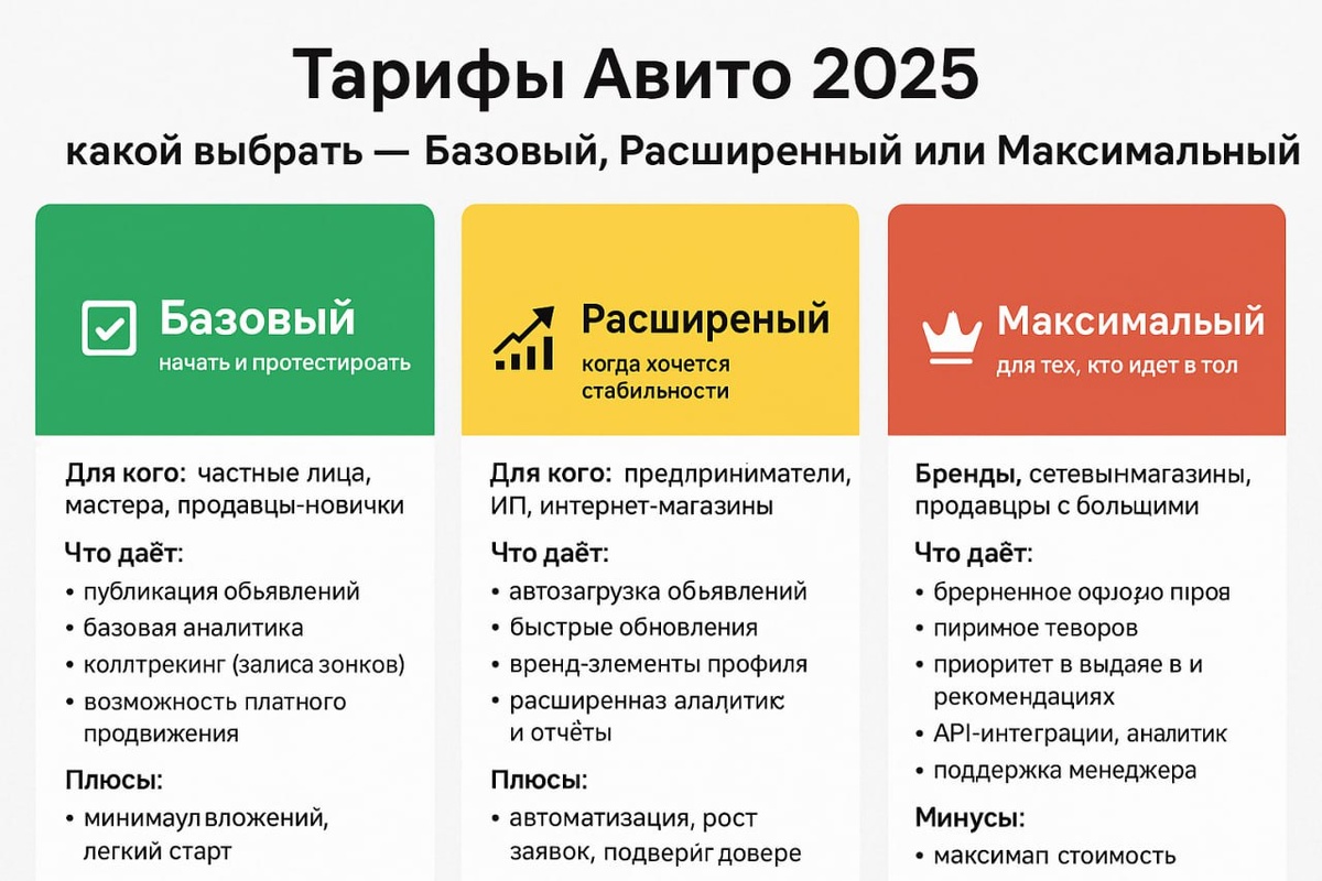 💰 Тарифы Авито 2025: какой выбрать — Базовый, Расширенный или Максимальный?
