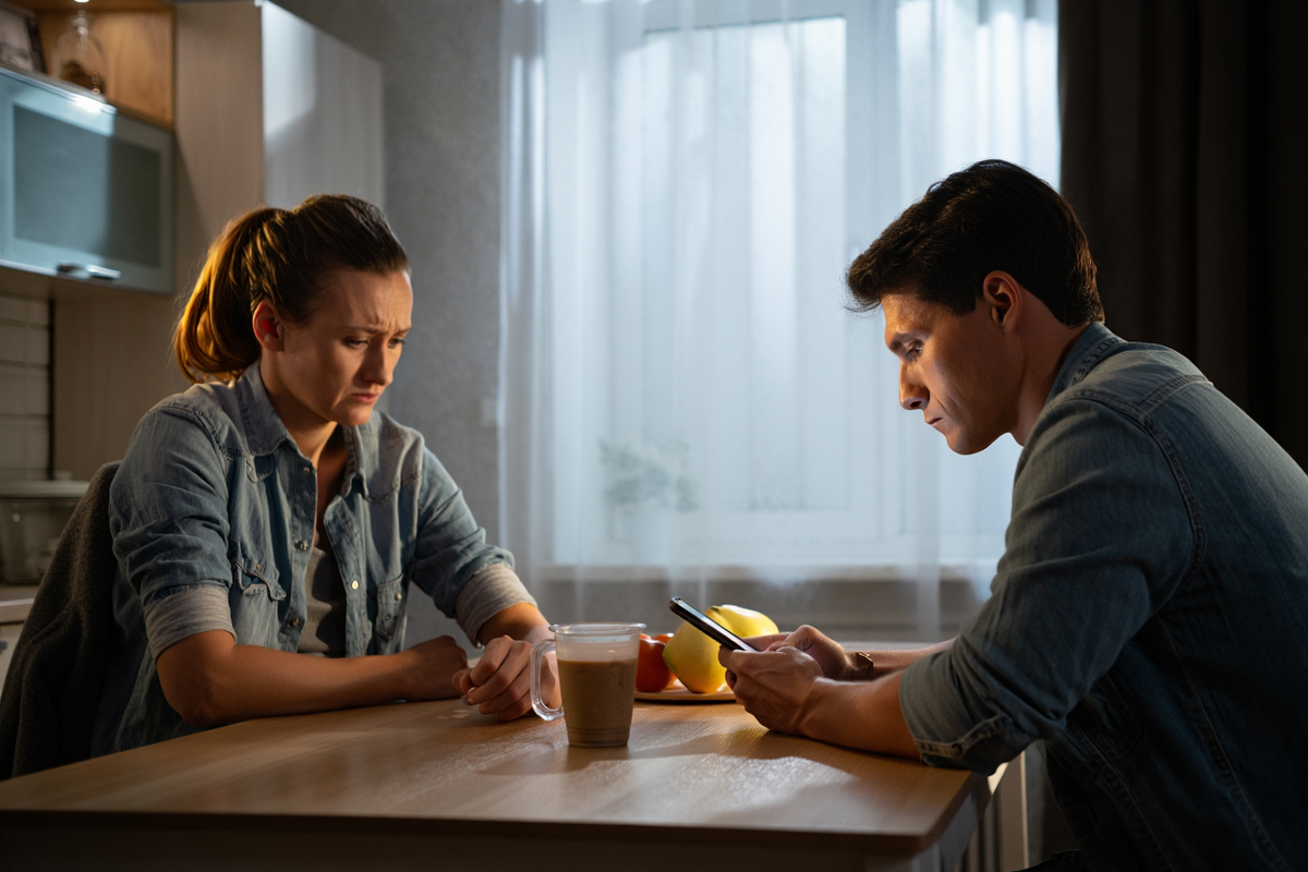 Когда домой вернулся, сразу поняла — что-то не так. Смотрит мимо меня будто. Разговаривает односложно. Вечером в телефоне сидит, улыбается чему-то. Я не выдержала, спросила:
