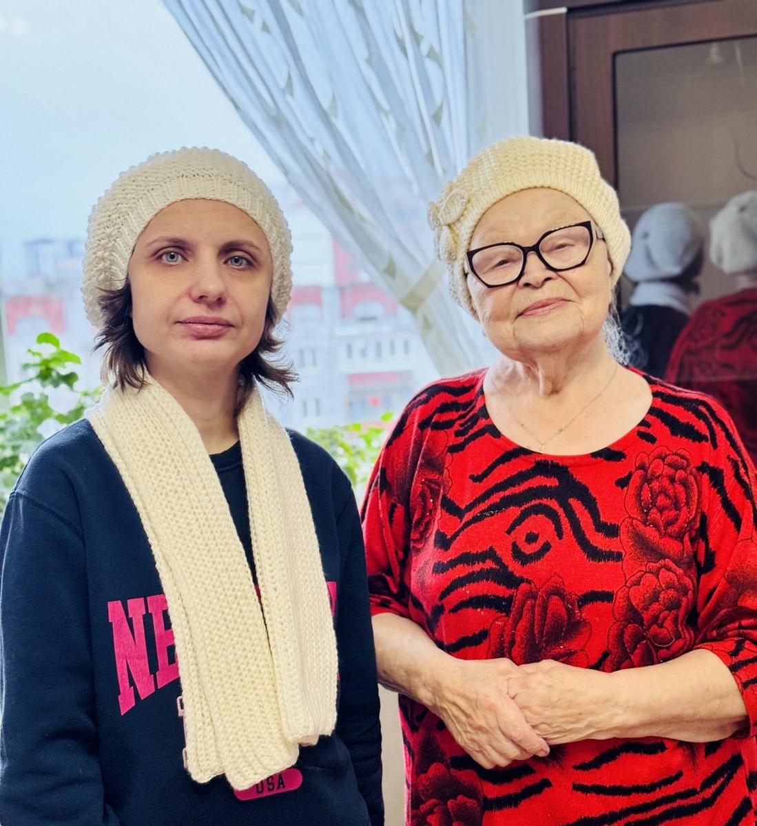 Сегодня 9 ноября, берет готов и шарфик тоже. Состоялась встреча с Леной, которая неделю тому назад заказала связать ей берет и шарфик. Сделала всё в срок и самое главное, ей сразу понравился берет и шарфик. Только надела и сразу улыбка, и никаких претензий. Я тоже счастлива, что так получилось хорошо. В своей работе я не сомневалась, но неправильно сказала, какой купить пряжи. На ошибках учимся. Она тут же сделала фото. Пригласила меня вместе с ней сфотографироваться и одеть тоже берет. Прошу оценить мою работу, уважаемые гости и подписчики. Всё хорошо. А дома увидев мою работу муж Елены, тоже захотел себе новую шапку. Долго общались в Телеграмм и договорились. Опять будет заказ. Потом появились 2 фото моих гераней. Розовая герань Красная герань Фото ниже, при прогулке у их дома. Цветы у дома 9 ноября, цветы у дома. Сегодня я с вами прощаюсь и желаю всем здоровья, успехов и счастья!