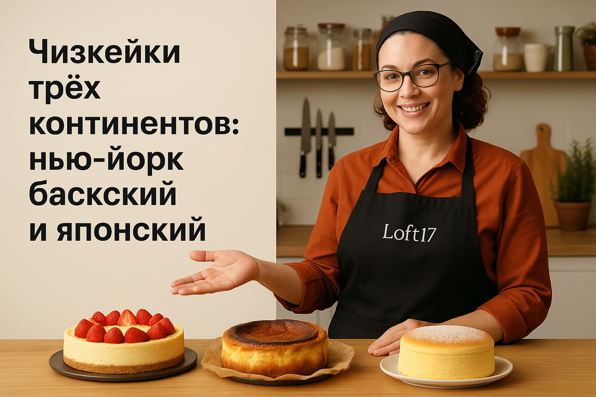 Чизкейк — один из самых любимых десертов мира. Его делают в кафе Нью-Йорка, подают в барах Сан-Себастьяна и украшают в токийских кондитерских. Каждый вариант — со своим характером, текстурой и историей. В Loft17 мы приглашаем вас на мастер-класс «Чизкейки трёх континентов», где вы узнаете, как создать три совершенно разных шедевра — нью-йоркский, баскский и японский чизкейки. Он плотный, насыщенный, бархатистый и невероятно ароматный. Именно с него началась мировая любовь к чизкейкам.
