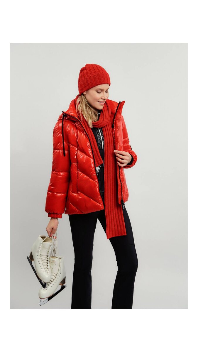 Пуховик Marc Cain в насыщенном красном цвете — тёплый, лёгкий и практичный.