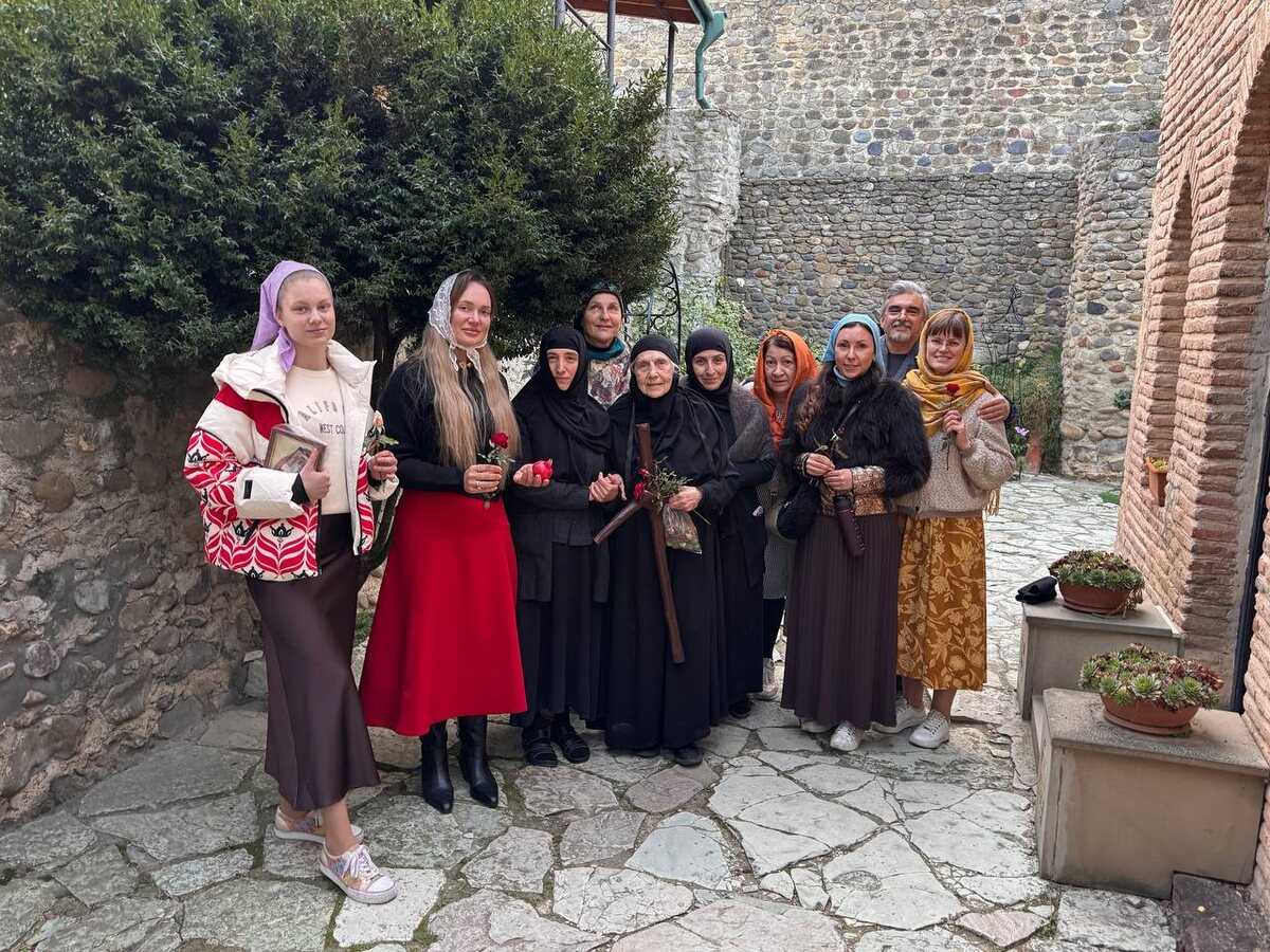 Воскресным вечером мы посетили Успенский монастырь в селе Дирби, где находится образ Дирбской иконы Божией Матери «Непраздная». Монастырь компактный, но очень уютный, расположен на границе с Южной Осетией. Нас радушно приняли матушки. «Непраздная» (также известна как Дирбская икона Божией Матери) — редкий образ из православной иконографии Пресвятой Богородицы. Название означает, что Богородица находилась в подготовке к важнейшему событию своей жизни — грядущему рождению Иисуса Христа. Икона представляет собой иллюстрацию к повествованию Святого Евангелия о том, как святой праведный Иосиф узнал, что обрученная ему Дева «имеет во чреве от Духа Святаго» и желал тайно отпустить её (Мф. 1:18–19). Особенность образа — Богородица изображена беременной. Богородица в подавленном виде утирает слёзы на своём лице, рассказывая Иосифу о ребёнке в своём чреве. Образ скоро распространился в Грузии и стал одним из наиболее почитаемых. В 2001 году грузинский митрополит Иов (Акиашвили) повелел написа