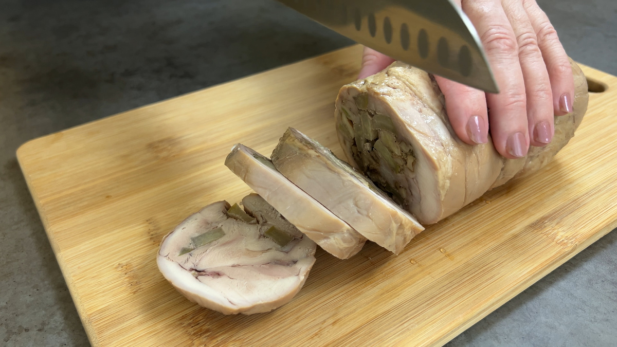 Куриный рулет получается сочным, ароматным и полезным. Внутри — нежное мясо бедра, кислое яблоко для свежести и грецкие орехи для хруста. Никаких консервантов, только специи и натуральные продукты. Он идеален для семейного ужина или праздника, а нарезать его можно как домашнюю колбасу. Плюс, это отличная альтернатива магазинным мясным изделиям!